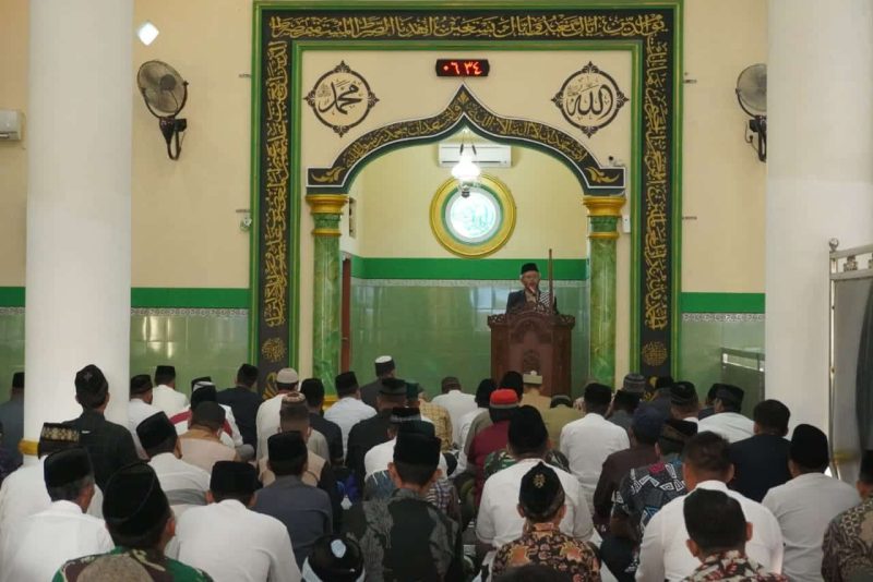 Bertindak selaku khotib, Ustadz Hasalim yang menyampaikan ceramahnya betapa bahayanya virus covid19 dan bertambahnya lagi penyakit mulut dan kuku PMK pada hewan.