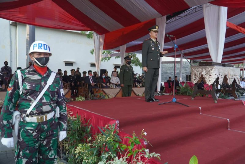 Dandim 0810/Nganjuk Inspektur Upacara Penurunan Bendera HUT Ke-77 Proklamasi Kemerdekaan RI