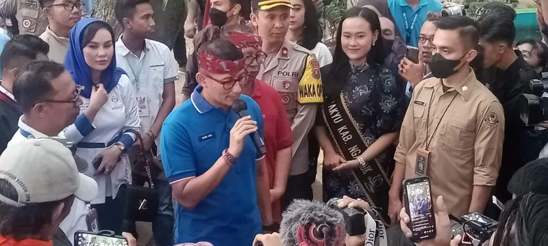 Dalam sambutanya Menparekraf Dr. H. Sandiago mengatakan bahwa Nganjuk harus bangkitkan Pariwisata dan Ekonomi Kreatif, mari bersinergi wujudkan Indonesia Maju, karena Nganjuk memiliki wisata alam yang menarik dan indah.