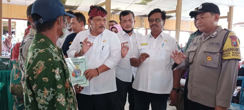 Ngluyu, KabarNganjuk.com- Kurang lebih 638 Sertifikat PTSL (Program Pendaftaran Tanah Sistematis Lengkap) di Desa Sugihwaras Kecamatan Ngluyu, diberikan secara simbolis oleh Plt. Bupati Nganjuk Marhaen Djumadi, Rabu (7/12/2022).