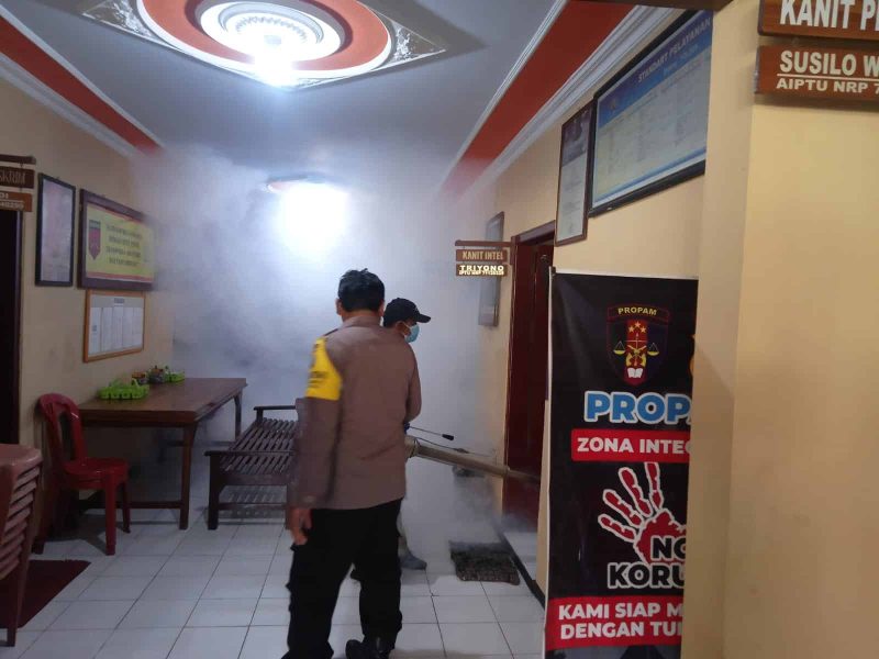 KabarNganjuk.com – Polres Nganjuk menggandeng Rumah Sakit Bhayangkara Nganjuk untuk melakukan fogging di seluruh mapolsek jajaran Polres Nganjuk. Hal ini dilakukan guna mengantisipasi penyebaran penyakit demam berdarah.