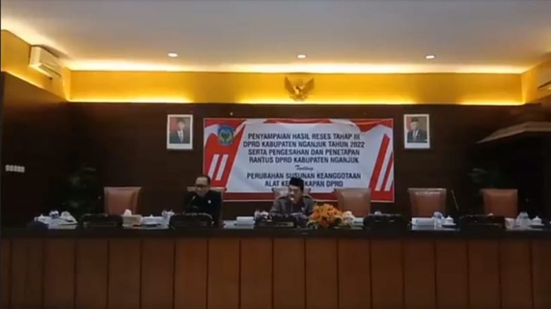 Rapat dipimpin langsung oleh Ketua DPRD Kabupaten Nganjuk Tatit Heru Tjahjono di Ruang Rapat Paripurna DPRD Kabupaten Nganjuk pada Jum’at (23/12/2022). Hadir langsung dalam rapat tersebut Sekda Kabupaten Nganjuk Nur Solekan, jajaran Forkopimda Nganjuk dan anggota DPRD Nganjuk.