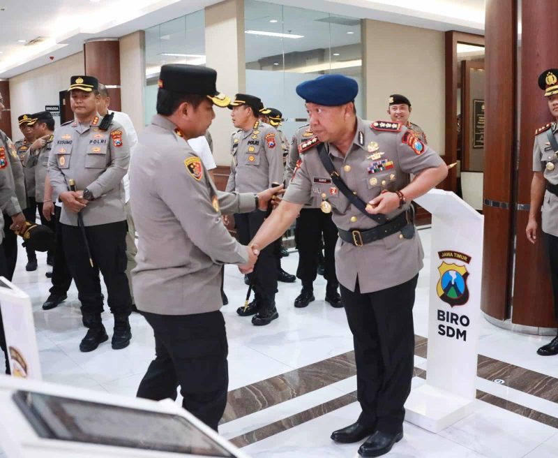 “Sertijab ini setelah Kapolri Jendral Polisi Lystio Sigit Prabowo, mengeluarkan surat telegram rahasia (STR) bernomor ST/2774/XXI/KEP/2022 pada 23 Desember 2022,” kata Kabid Humas Polda Jatim, Kombes Pol Dirmanto usai mengikuti upacara sertijab.