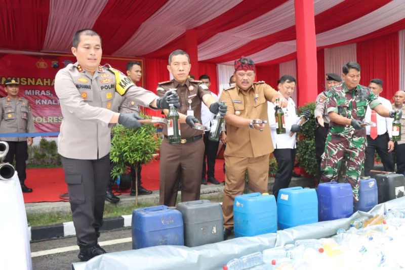 Barang bukti yang dimusnahkan adalah Sabu seberat 28.55 gram, Okerbaya sebanyak 42.600 butir, 2.003 liter Arak Jowo, 5 liter Anggur Kolesom, 1 liter Kolencu, 13.64 liter Anggur Merah, 5.58 liter Beras Kencur, 67.58 liter Bir Singaraja, 6.82 liter Bir Prost, Knalpot brong 53 unit dan velg modifikasi 18 unit.