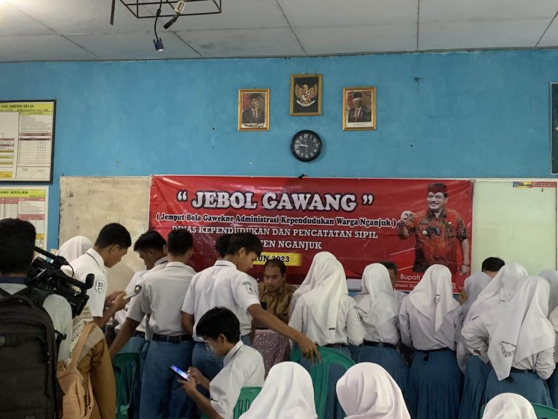 Nganjuk, KabarNganjuk.Com – Dinas kependudukan dan pencatatan sipil kabupaten nganjuk, kembali melaksanakan program jemput bola perekaman ktp elektronik ke pelajar SMA. Kali ini menyasar ratusan siswa-siswi di Sma Negeri 1 Sukomoro, desa Sumengko Kecamatan Sukomoro Kabupaten Nganjuk pada selasa 28 maret 2023 pagi.
