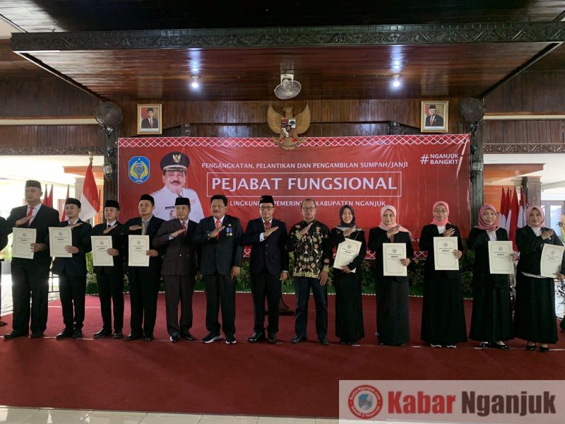 Nganjuk, KabarNganjuk.Com – Bertempat di pendopo KRT Sosro Koesoemo Bupati Nganjuk Marhaen Djumadi melantik dan mengambil sumpah janji jabatan sejumlah 420 orang pejabat.
