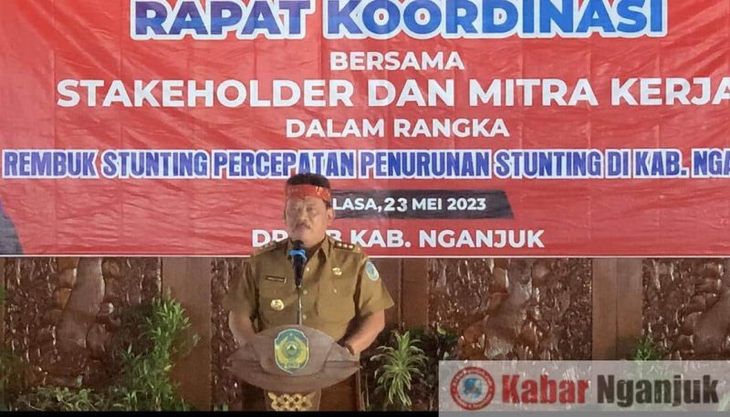 Nganjuk, KabarNganjuk.Com – Secara resmi dibuka oleh bupati Nganjuk Marhaen Djumadi Rapat Koordinasi (Rakor) bersama stakeholder dan mitra kerja melakukan rembuk permasalahan stunting dan percepatan penurunan stunting yang bertempat di Pendopo KRT Soesro Koesoemo Kabupaten Nganjuk. Pada Selasa, 23 Mei 2023.