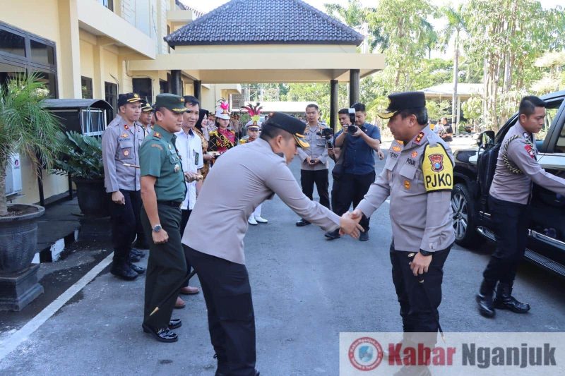 Kapolda Jatim hadir di Polres Nganjuk didamping oleh Karorena Polda Jatim, Kombespol Drs. Revindo, Kabidpropam Polda Jatim, Kombespol Imam Setiawan S.I.K., Kabidkeu Polda jatim Kombespol Srigustian S.H., M.H., Kabidlapfor Kombespol Sodiq Pratomo S.Si, M.Si., Dirtahti Polda Jatim Kombespol Eka Yekti Hananto Seno S.I.K.