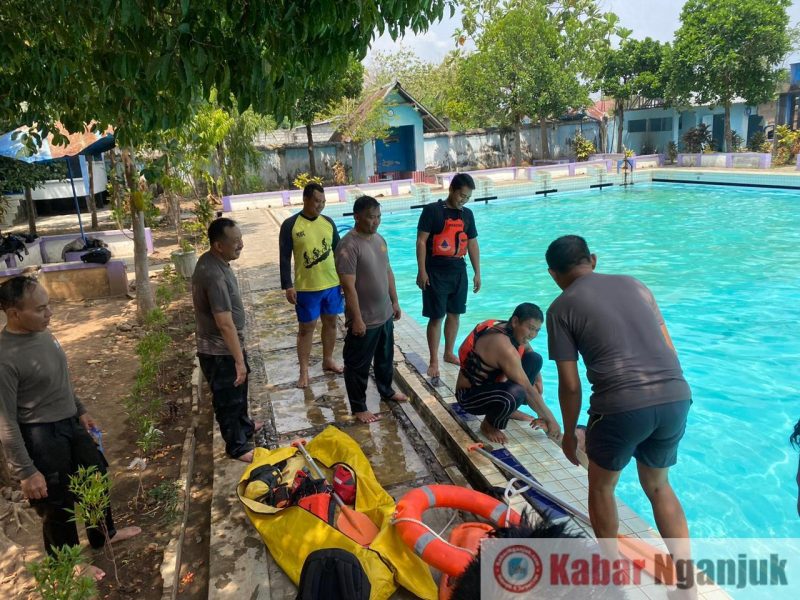 Nganjuk, KabarNganjuk.com- Polres Nganjuk melalui Bag SDM Polres Nganjuk bekerja sama dengan BPBD kabupaten Nganjuk menggelar program Polisi Belajar fungsi teknis Samapta dengan materi “SAR Air Terbatas”, diikuti oleh anggota Sat Samapta dan Siswa Bintara Latja, Kegiatan dilaksanakan di dua tempat yakni di halaman parkir Polres Nganjuk dan kolam renang Sri Tanjung, Nganjuk, Rabu (15/11/2023).