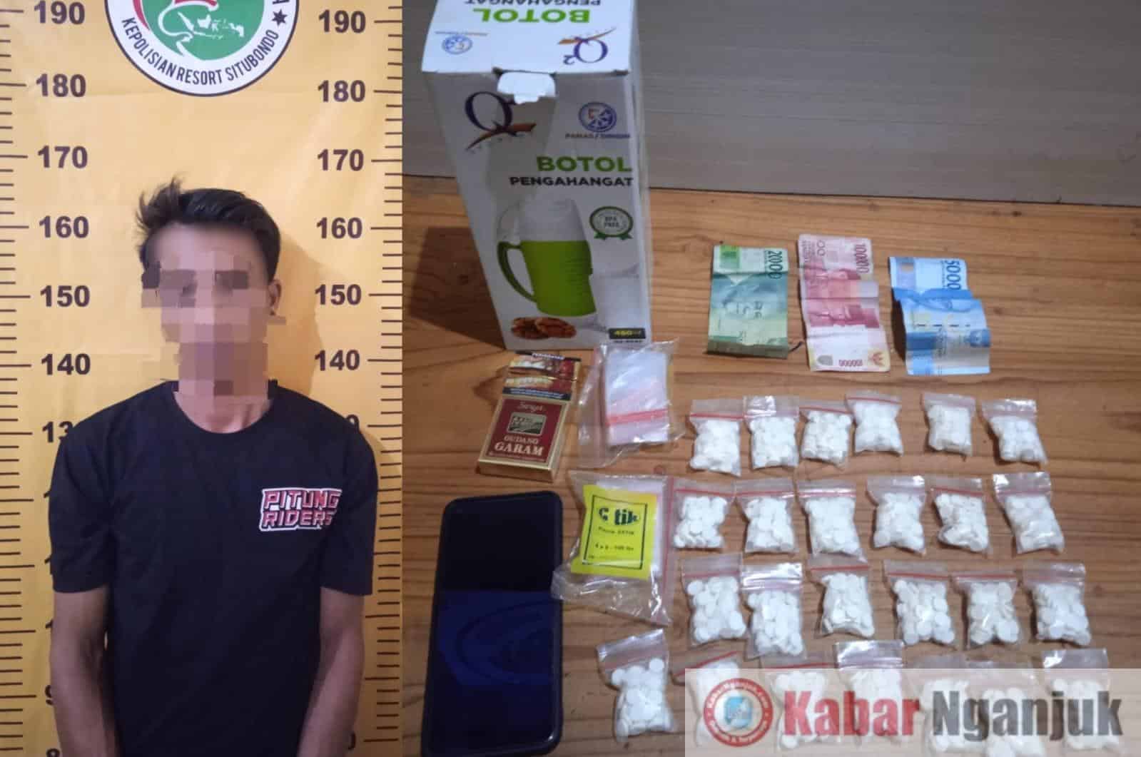 Situbondo,KabarNganjuk.com- Satresnarkoba Polres Situbondo Polda Jatim berhasil menangkap seorang laki – laki berinisial JB (28) yang diduga pengedar obat keras berbahaya (Okerbaya) jenis Pil Trex atau Trihexyphenidyl.