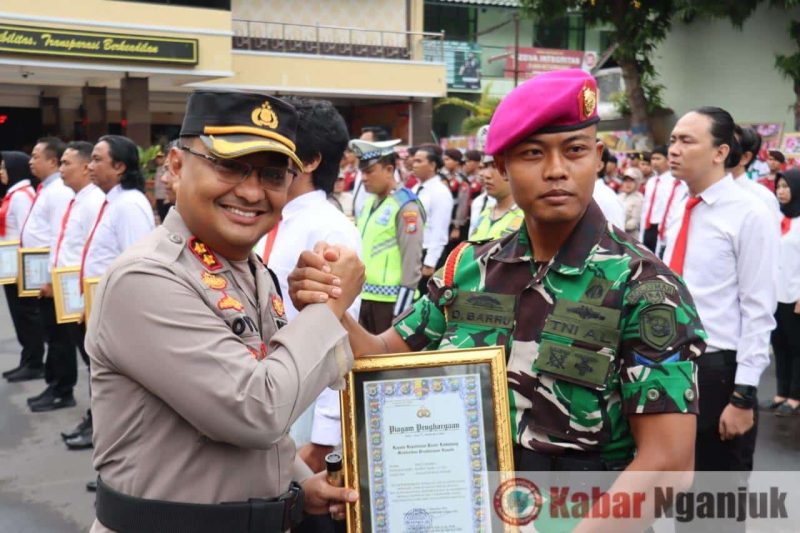 Lumajang, KabarNganjuk.com- Kapolres Lumajang AKBP Dr Boy Jeckson Situmorang, S.H., S.I.K., M.H., memberikan penghargaan atau reward kepada anggota TNI AL Koptu Deka Barru anggota Kolatmarinir yang telah yang telah membantu tugas Kepolisian.