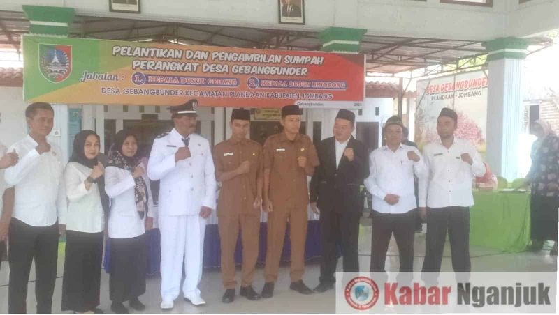 Jombang -Sabtu (23/12/2023) Kapala desa Gebangbunder, Basuki,S.E, resmi melantik dan mengambil sumpah jabatan Kepala Dusun Gebang dan Kepala Dusun Binorong, bertempat di pendopo Kantor Desa Gebangbunder, Kecamatan Plandaan, Kabupaten Jombang, pukul 10.00 sampai selesai.