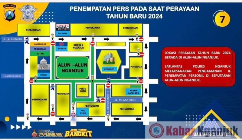 Polres Nganjuk Lakukan Rekayasa Arus Lalu Lintas Seputar Alun-Alun Selama Malam Pergantian Tahun Baru 2024
