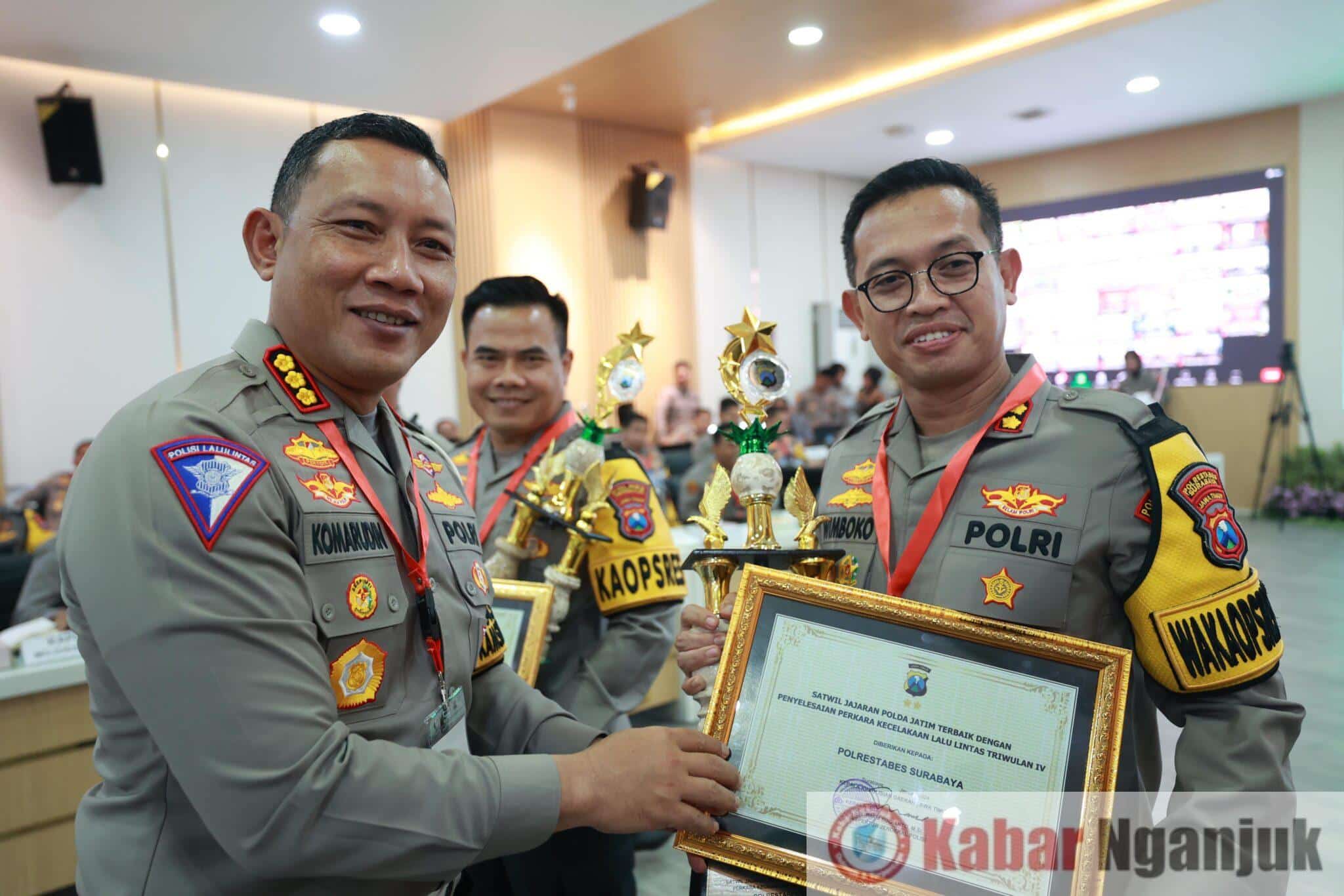 SURABAYA, KabarNganjuk.com – Satuan Lalu Lintas (Satlantas) Polrestabes Surabaya Polda Jatim meraih penghargaan dalam kategori Terbaik Penyelesaian Perkara Lalu Lintas Triwulan IV tingkat Polda Jawa Timur.