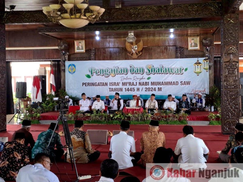 KabarNganjuk.com – Pemerintah Kabupaten (pemkab) Nganjuk memperingati hari Isra Mi’raj Nabi Muhammad SAW yang ke-1445 Masehi dengan mengadakan pengajian dan sholawat di Pendopo KRT Sosro Koesoemo pada, Rabu (21/02/24).