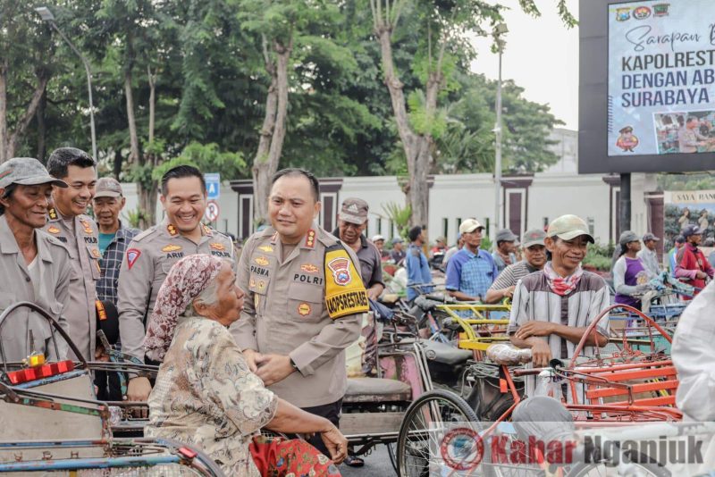 SURABAYA, KabarNganjuk.com – Polrestabes Surabaya kembali melaksanakan kegiatan sarapan bareng dengan abang becak di lapangan A Mako Polrestabes Surabaya. Kamis (7/3/24)