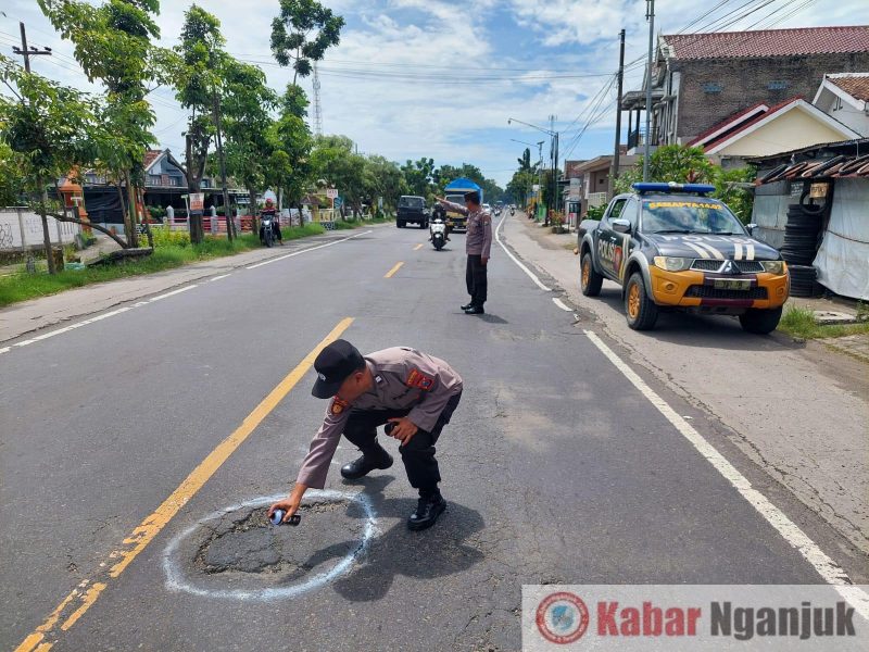 KabarNganjuk.com – Kapolres Nganjuk, AKBP Muhammad, S.H., S.I.K., M.Si., melalui Kasat Lantas AKP Achmat Rochan, S.H., M.M., membenarkan pihaknya telah menandai jalan berlubang di sepanjang jalur arteri dari Kertosono hingga perbatasan Wilangan dan Kabupaten Madiun, dengan menggunakan cat warna putih, Rabu (20/03/2024).