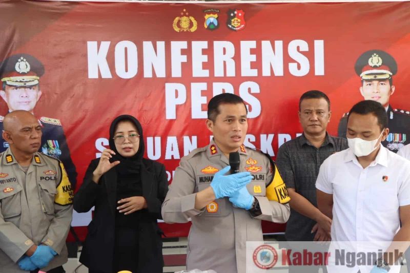 Nganjuk – Kapolres Nganjuk, AKBP Muhammad, S.H., S.I.K., M.Si., dalam konferensi persnya, Sabtu (30/03/2024) mengungkapkan kematian mayat perempuan tanpa identitas yang ditemukan di kawasan hutan petak 117 RPH Tamanan, BPKPH Tamanan, Desa Sambikerep Kecamatan Rejoso Kabupaten Nganjuk beberapa hari lalu akibat luka benturan benda tumpul di kepala.