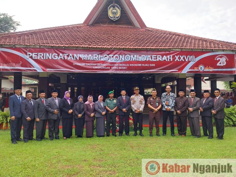 KabarNganjuk.com – Pemerintah Kabupaten (Pemkab) Nganjuk menggelar Peringatan Hari Otonomi Daerah Ke-XXVIII tahun 2024, Otonomi Daerah berkelanjutan menuju ekonomi hijau dan lingkungan yang sehat, Kamis (25/4/2024).