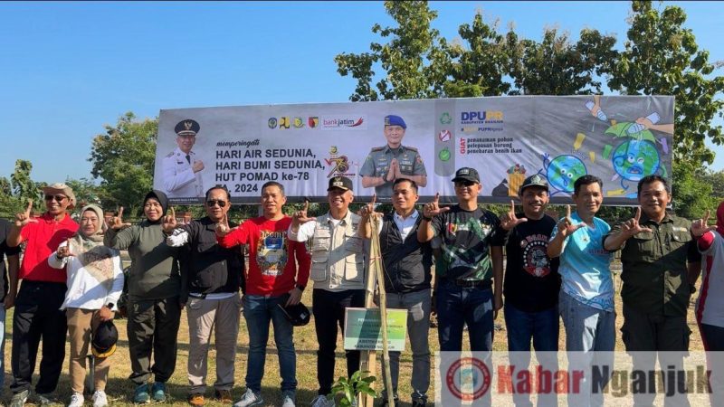 KabarNganjuk.com – Peringati Hari Air Sedunia, Hari Bumi Sedunia, HUT POMAD (Polisi Militer Angkatan Darat) Ke-78 Tahun 2024 di sekitar Bendungan Semantok pada Jumat pagi (17/5/24)