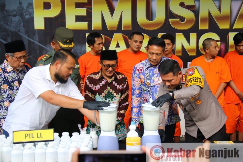 “Pemusnahkan barang bukti narkoba yang berhasil kami sita dari 9 laporan polisi. Barang bukti ini terdiri dari 1,5 kg Sabu, 44,216 kg Ganja, 391 butir Ekstasi, 19.000 butir Carnophen, dan 50.000 butir Pil Koplo berlogo ££,” ujar Kombes Pol Budi Hermanto,Rabu (22/05).