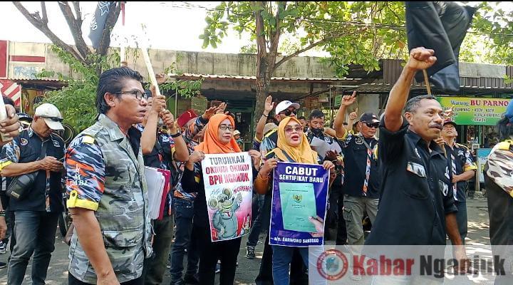 Aksi ini dilakukan terkait dugaan adanya sertifikat ganda yang dimiliki oleh warga Kecamatan Sukomoro, Kabupaten Nganjuk.