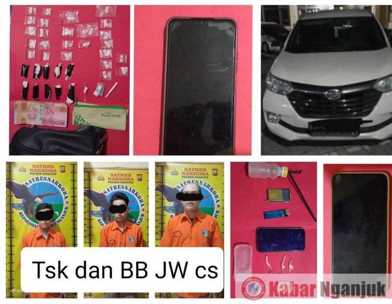 Saat dilakukan penggeledahan terhadap dua orang yaitu JW (42) dan AP(27) masing-masing warga Desa Balongrejo dan Desa Tiripan, Kecamatan Berbek, Kabupaten Nganjuk, dan ditemukan beberapa paket sabu siap edar kemudian dilaksanakan pengembangan dan menangkap DN (30) warga Desa Patihan, Kecamatan Loceret, Kabupaten Nganjuk.