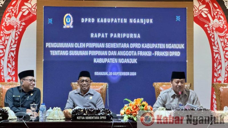 KabarNganjuk.com – Dewan Perwakilan Rakyat (DPRD) Kabupaten Nganjuk menggelar Rapat Paripurna dengan agenda pengumuman oleh pimpinan sementara DPRD Kabupaten Nganjuk tentang susunan pimpinan dan anggota fraksi-fraksi DPRD Kabupaten Nganjuk di ruang rapat sidang paripurna (20/9/24)