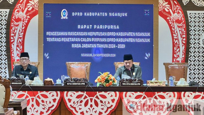 KabarNganjuk.com – Setelah dilantik beberapa waktu lalu, Dewan Perwakilan Rakyat Daerah (DPRD) Kabupaten Nganjuk menggelar rapat paripurna penetapan calon pimpinan DPRD Kabupaten Nganjuk untuk masa jabatan 2024-2029. Rapat ini berlangsung di ruang sidang paripurna DPRD Kabupaten Nganjuk, Selasa (24/9/24).
