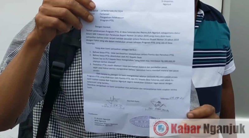 KabarNganjuk.com – Empat warga Desa Sekorejo, Trimaryono, Gunarto, Maryono, dan Pujianto, warga Desa Sukorejo, Kecamatan Rejoso, Kabupaten Nganjuk, Jawa Timur, mendatangi Mapolres Nganjuk untuk melaporkan panitia PTSL dan Plt Kepala Desa.