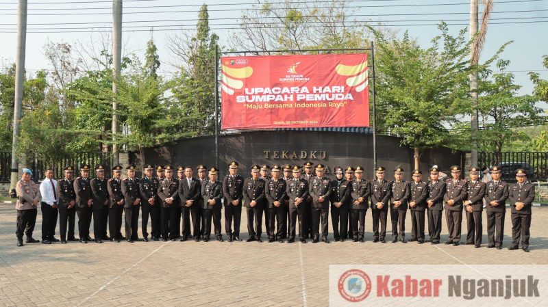 KabarNganjuk.com – Polres Nganjuk menggelar upacara Peringatan Hari Sumpah Pemuda 28 Oktober 2024 dengan mengangkat tema “Maju Bersama Indonesia Raya”. Upacara dilaksanakan di lapangan apel Polres Nganjuk, Senin (28/10/2024).