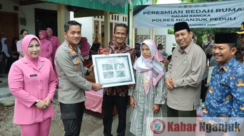 Nganjuk-KabarNganjuk.com-Polres Nganjuk meresmikan rumah yang telah selesai dibedah dalam program Polres Nganjuk Peduli, Kegiatan yang berlangsung di Jl. Bengawan Solo V, Kelurahan Ringinanom, Kecamatan/Kabupaten Nganjuk, ini merupakan hasil kerja sama dengan Baznas Kabupaten Nganjuk, Selasa (17/12/2024).