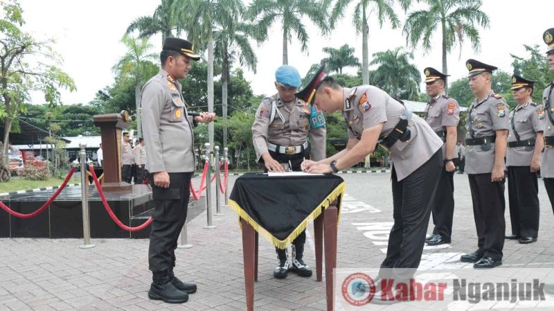 Kapolres Nganjuk menyampaikan bahwa mutasi jabatan merupakan hal wajar dalam organisasi sebagai bentuk penyegaran dan pembinaan karier.