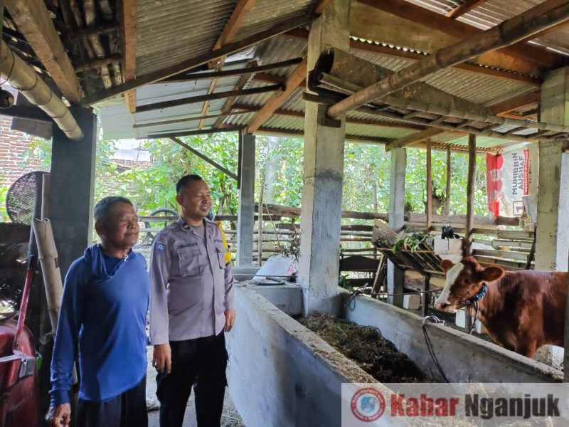 Nganjuk, KabarNganjuk.com– Guna mendukung program ketahanan pangan nasional, Bhabinkamtibmas Desa Nglawak Aipda Sunandar memantau langsung kondisi kandang sapi milik warga di Dusun Nglawak, Kecamatan Prambon, Kabupaten Nganjuk, Selasa (29/7/2025).