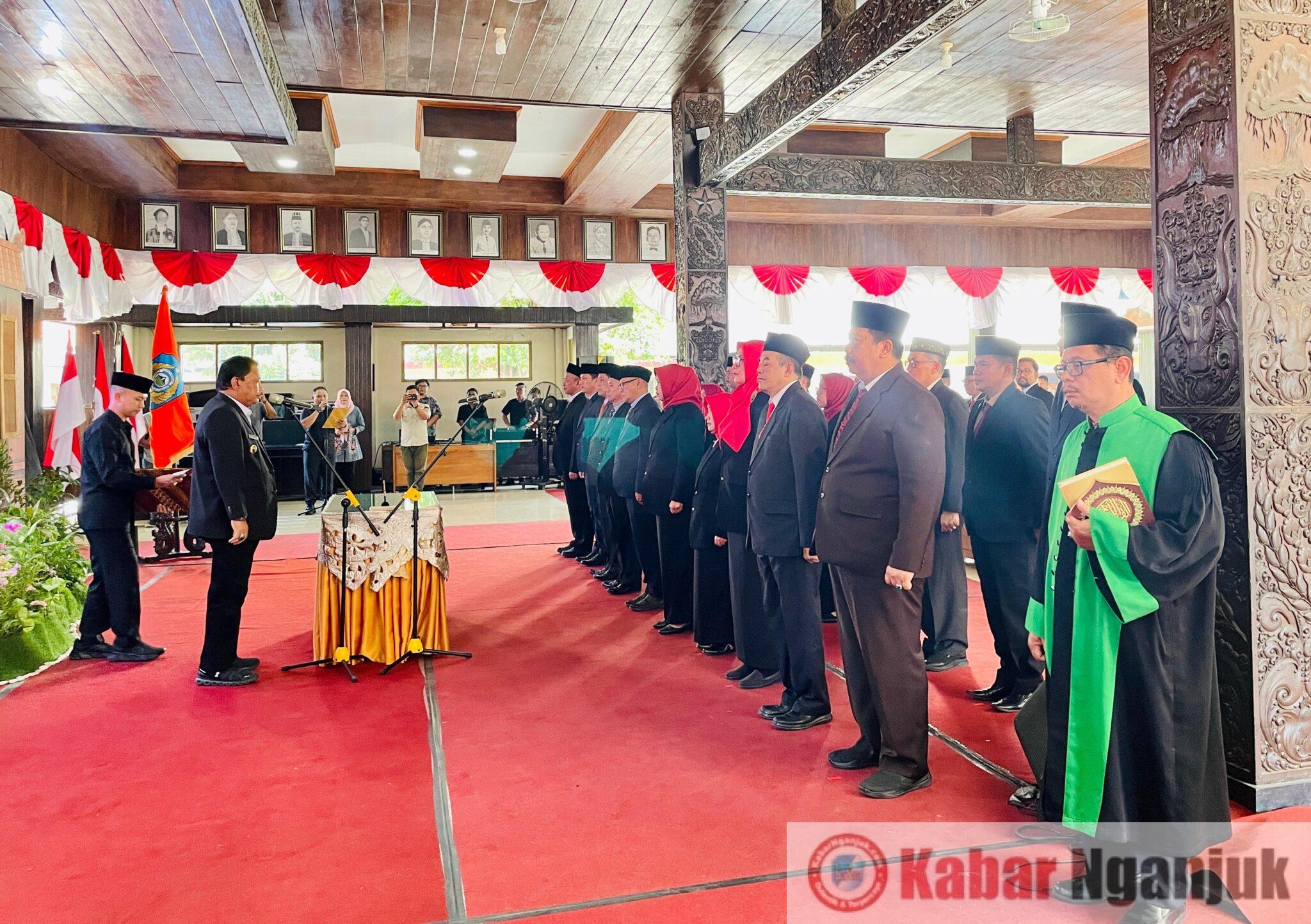 Nganjuk, KabarNganjuk.com- Sebanyak 21 Pejabat Pimpinan Tinggi Pratama di lingkungan Pemerintah Kabupaten Nganjuk secara resmi dilantik dan diambil sumpah/janji jabatannya oleh Bupati Nganjuk, Kang Marhaen, pada Kamis, 31 Juli 2025, bertempat di Pendopo KRT Sosro Koesoemo.