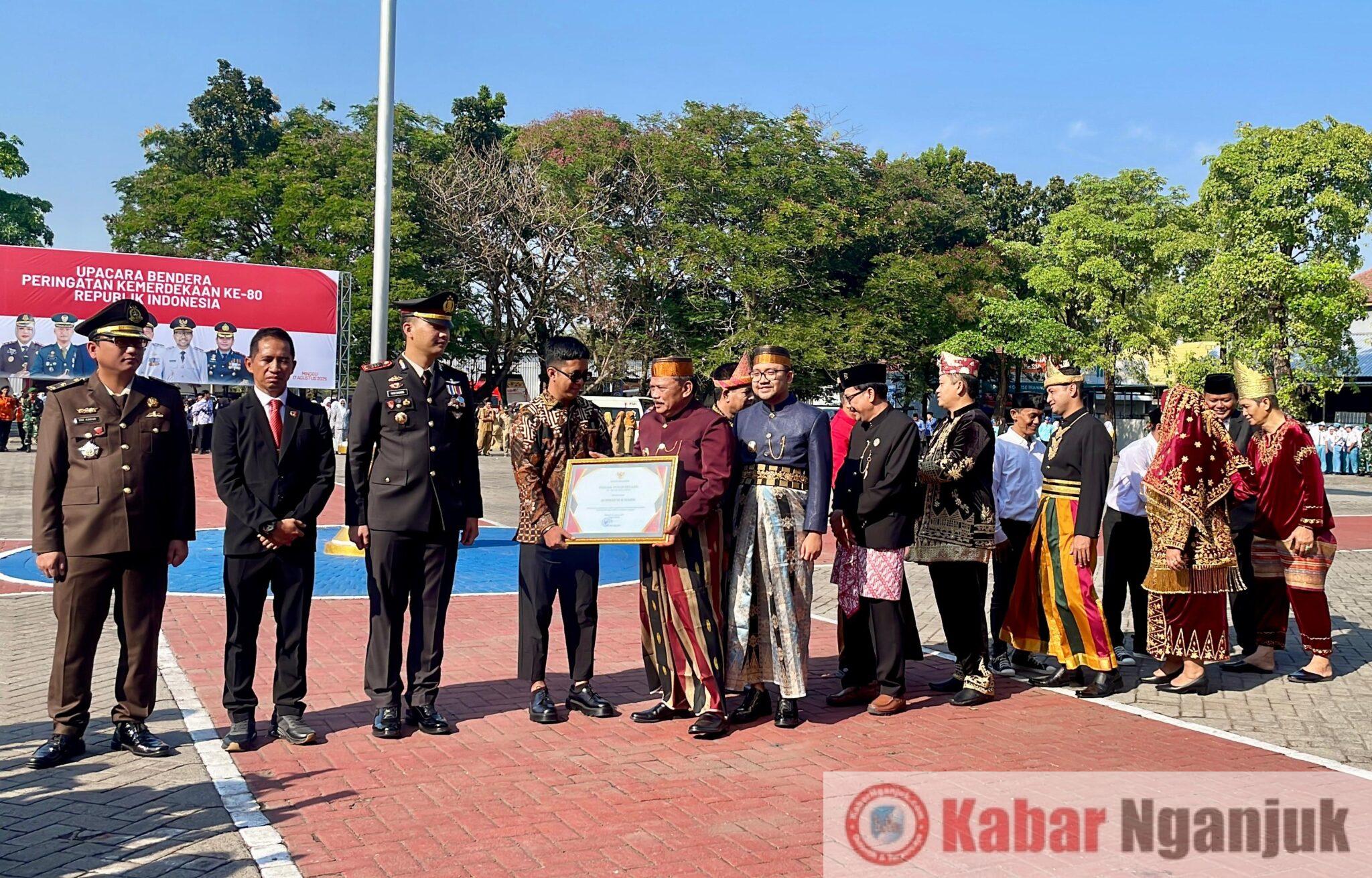 Upacara peringatan 17 Agustus di Kabupaten Nganjuk yang dipimpin Bupati Marhaen juga dirangkai dengan penyerahan remisi kepada narapidana serta pemberian penghargaan.(Lifa).