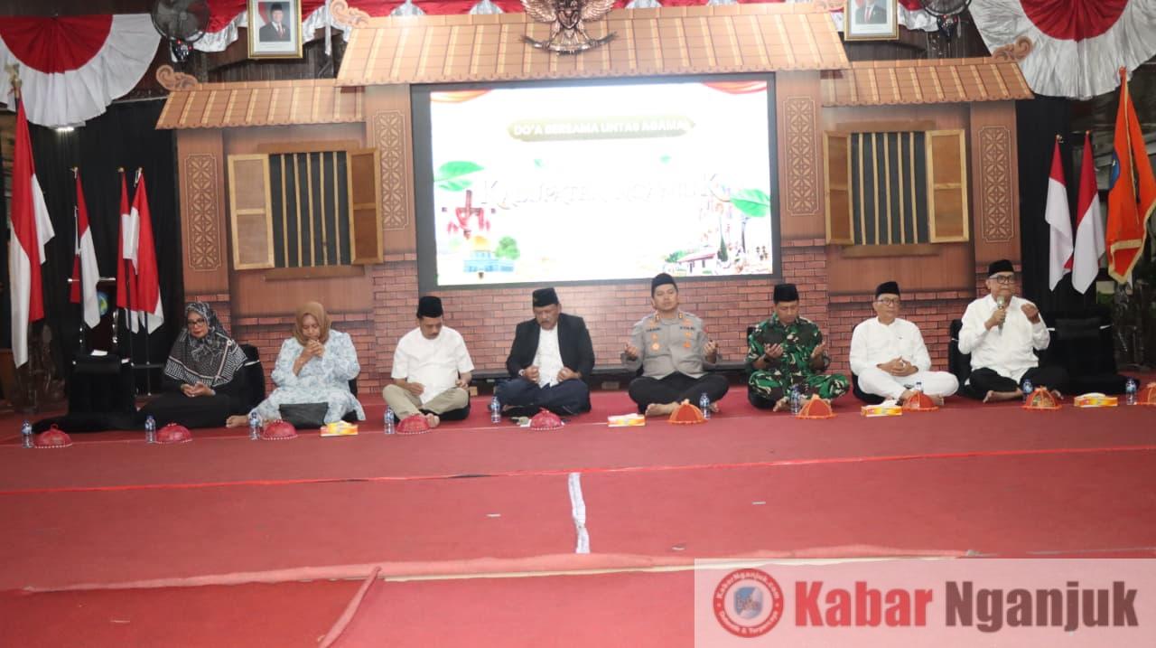 Nganjuk, KabarNganjuk.com- Ratusan tokoh agama, pejabat Forkopimda, mahasiswa, hingga perwakilan masyarakat menghadiri doa bersama lintas agama bertajuk Bersatu Menjaga Kabupaten Nganjuk yang digelar di Pendopo KRT Sosro Koesomo Pemkab Nganjuk, Senin (1/9/2025) malam. Acara ini diikuti sekitar 200 peserta dengan tujuan memperkuat persatuan dan menjaga kondusivitas wilayah.