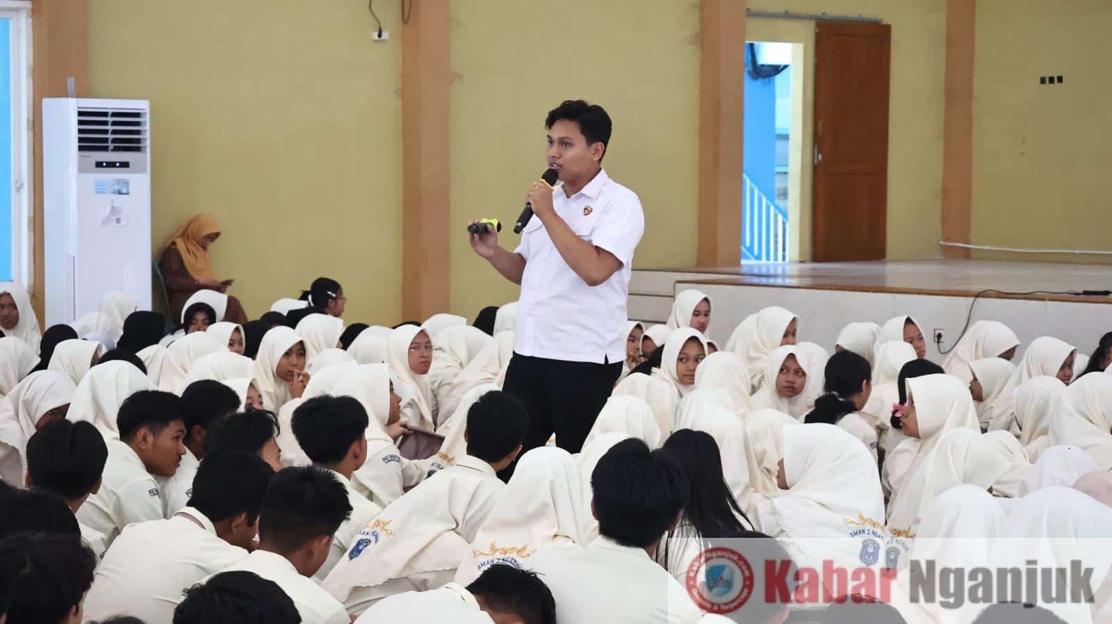 Dalam kegiatan tersebut, tim dari Polres Nganjuk menghadirkan IPDA Dwi Purnomo, S.H., selaku Kurbinops Satbinmas Polres Nganjuk sebagai narasumber. Ia memaparkan berbagai bentuk kekerasan seksual yang sering terjadi di lingkungan pelajar, dampak hukumnya, serta bahaya penyalahgunaan narkoba terhadap masa depan generasi muda.