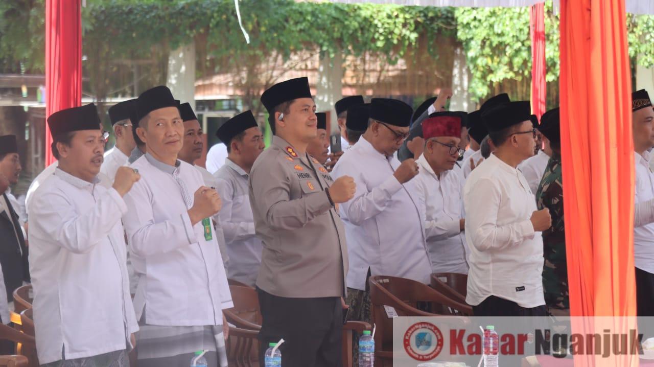 Upacara tersebut dipimpin langsung oleh Bupati Nganjuk Dr. H. Marhaen Djumadi, S.E., S.H., M.M., M.B.A. dan diikuti oleh ribuan santri, pelajar, serta masyarakat.
