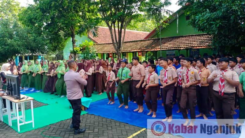 Nganjuk, KabarNganjuk.com – Dalam upaya mencegah kenakalan remaja dan penyalahgunaan narkoba di kalangan pelajar, Polsek Jatikalen menggelar kegiatan penyuluhan di SMPN 1 Jatikalen, Jumat (31/10/2025). Kegiatan ini diikuti sekitar 250 siswa serta dewan guru, dengan materi seputar tertib lalu lintas, tata tertib sekolah, dan bahaya narkoba.