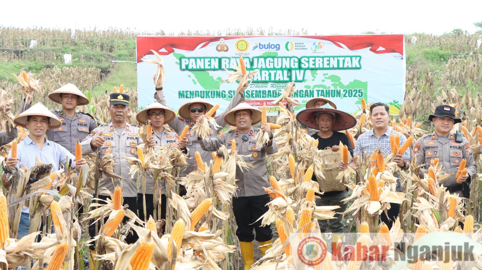 Nganjuk, KabarNganjuk.com – Dalam rangka mendukung program swasembada pangan nasional tahun 2025, Polres Nganjuk turut serta dalam kegiatan Panen Raya Jagung Serentak Kuartal IV yang digelar di lahan perhutanan sosial Desa Sambikerep, Kecamatan Rejoso, Kabupaten Nganjuk, Kamis (6/11/2025).