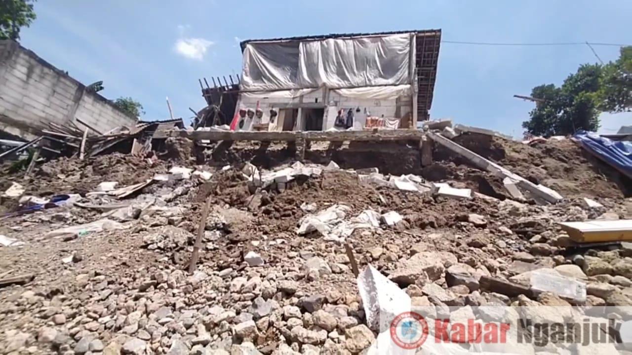 Nganjuk, KabarNganjuk.com – Sebuah rumah milik Desi Wirawati, warga Desa Kedungdowo, Kecamatan Nganjuk Kota, Jawa Timur, roboh setelah tanah di bawah bangunan tersebut ambles akibat tergerus aliran Sungai Widas. Peristiwa ini membuat Desi bersama suami dan empat anaknya kehilangan tempat tinggal dan terpaksa mengungsi ke rumah orang tuanya.