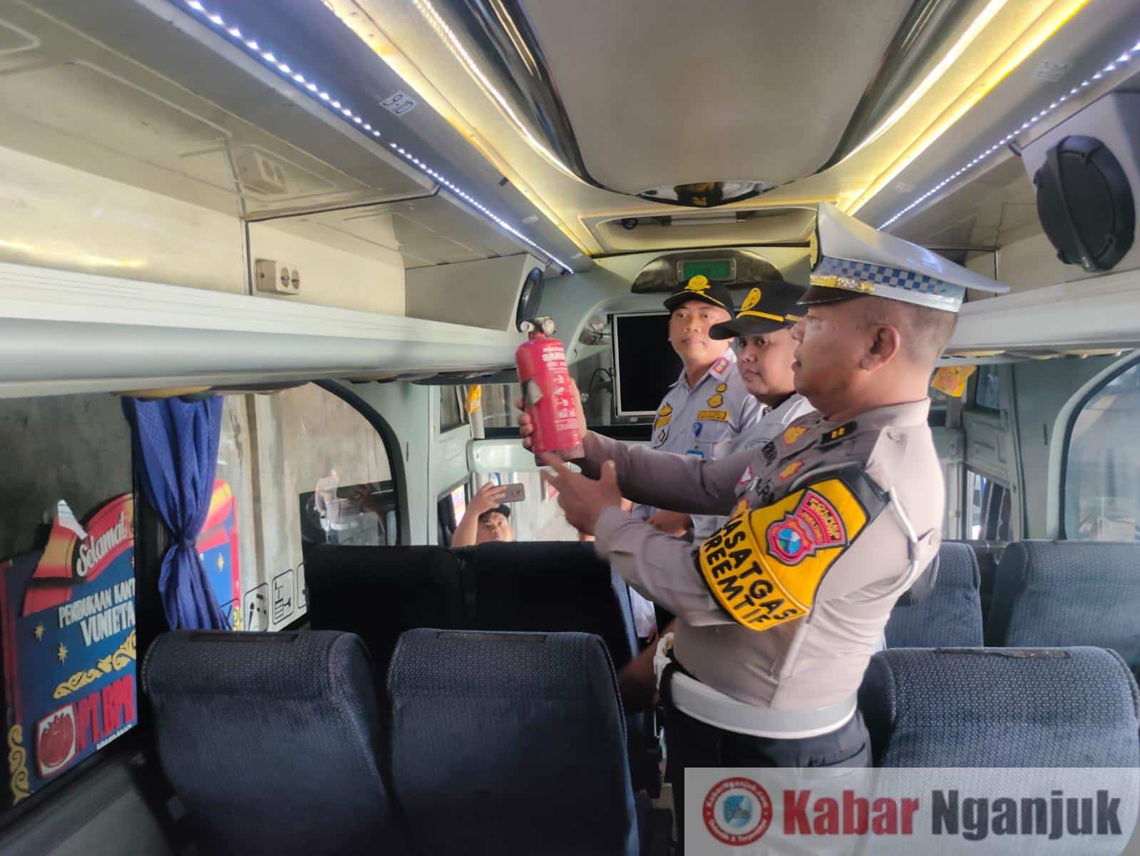 Nganjuk, KabarNganjuk.com – Dinas Perhubungan Provinsi Jawa Timur bersama Satlantas Polres Nganjuk dan Balai Uji KIR Dinas Perhubungan Kabupaten Nganjuk melaksanakan kegiatan rampcheck di garasi PO. Konco Dewe Nganjuk, yang dipimpin oleh IPDA Jarwanto, Kamis (27/11/2025).