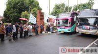 Nganjuk, KabarNganjuk.com- Pada Kamis, 26 Maret 2026, Bupati Nganjuk, Kang Marhaen, secara resmi memberangkatkan ratusan warga dalam program Balik Gratis 2026. Kegiatan ini digelar di Jalan Basuki Rahmad, tepat di depan Pendopo Kabupaten Nganjuk, dan dihadiri oleh jajaran Pemerintah Kabupaten serta masyarakat yang menjadi peserta. Sebanyak 300 warga diberangkatkan menggunakan enam unit bus eksekutif, dengan dua bus menuju Surabaya dan empat bus lainnya diarahkan ke Jakarta.