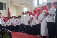 Gubernur Jawa Timur, Khofifah Indar Parawansa mengambil Sumpah Jabatan dan melantik Wakil Bupati Nganjuk, Marhaen Djumadi, menjadi Bupati Nganjuk di Gedung Negara Grahadi, Surabaya,…