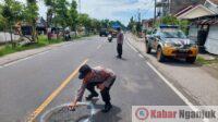 Cegah Laka Lantas, Polres Nganjuk Tandai Jalan Berlubang di Wilayahnya dengan Cat Putih