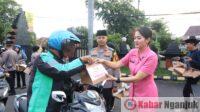 Polres Nganjuk Bersama Pengurus Bhayangkari Cabang Nganjuk Bagikan Takjil untuk Pengguna Jalan
