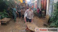 Sinergitas, Polisi Bersama TNI dan Warga Gotong Royong Bersihkan Material Longsor di Trenggalek