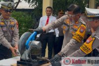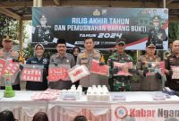 Nganjuk-KabarNganjuk.com, Kapolres Nganjuk, AKBP Siswantoro, S.I.K., M.H., Pimpin press rilis akhir tahun 2024 dan pemusnahan barang bukti bertempat di Mapolres Nganjuk pada senin 31/12/2024….