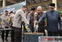 Nganjuk-KabarNganjuk.com, Kapolres Nganjuk, AKBP Siswantoro, S.I.K., M.H., Pimpin press rilis akhir tahun 2024 dan pemusnahan barang bukti bertempat di Mapolres Nganjuk pada senin 31/12/2024….